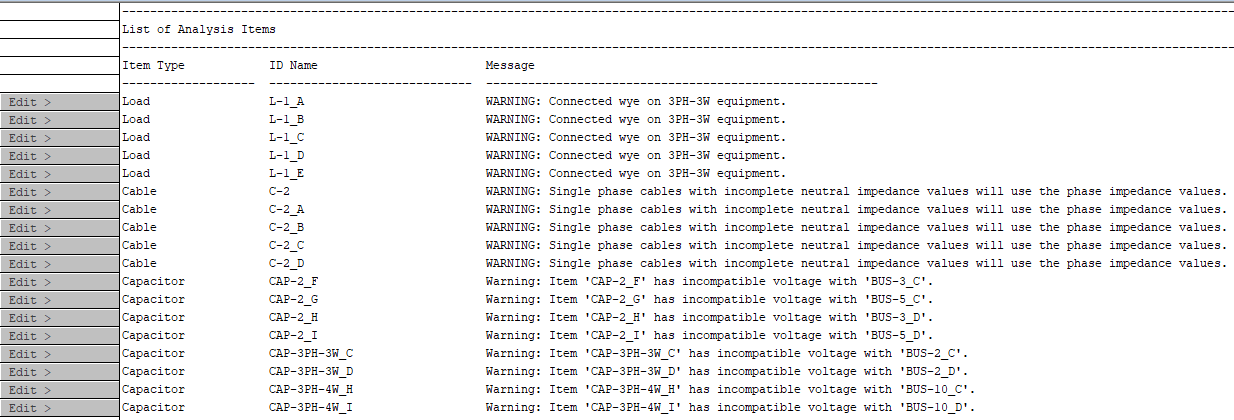 Puede hacer clic derecho en el botón Editar para ver el cuadro de diálogo de datos del elemento o buscar el elemento en el diagrama unifilar. Sin embargo, no puede hacer cambios en los elementos mientras se encuentre en el modo Flujo de potencia.